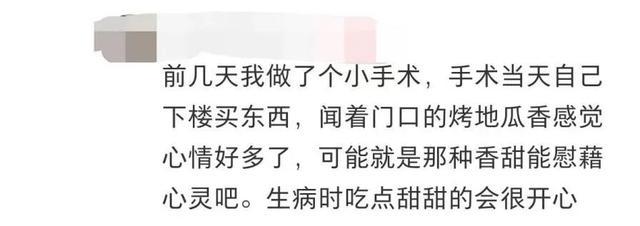 有的,是自己一个人住院做手术,手术当天下楼买给自己的烤红薯,是吃在嘴里,甜在心里的自我疗愈;