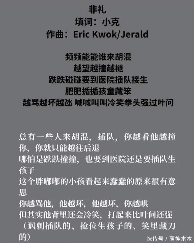 还有人翻出陈奕迅古早歌曲《蝗虫》,其中歌词也早就被质疑影射内地歌迷。而这些质疑和言论,在陈奕迅本人看来是长期的“网暴”,甚至就连焦虑也是为此引起,从来没有想过自己的言行问题。
